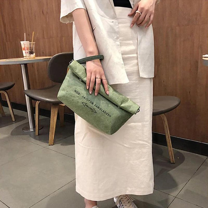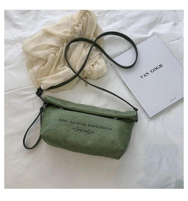 Fashion Dumpling Kraft Paper Crossbody Bags for Women Flip Buttons Closure Anti Theft Handbags and Eco Friendly Purses