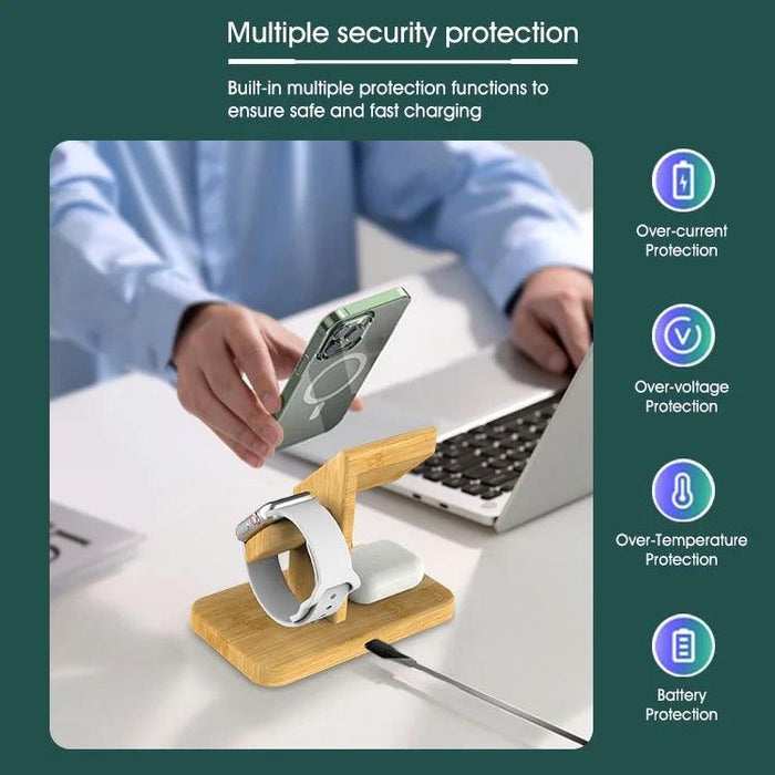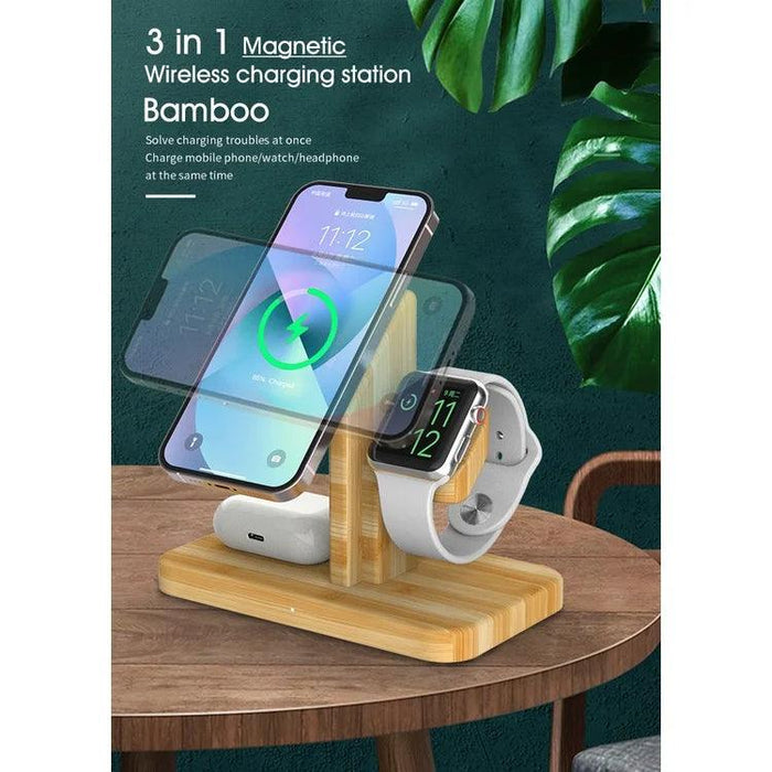 Wireless Charger Eco-friendly Bamboo 3 In 1 Fast Charging Qi 15w/5w/3w Magnetic 3 In 1 Wireless Charger Pad3 In 1 Wireless